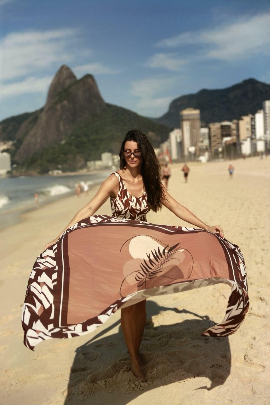 Pareo em estampa de folhas combina perfeitamente com o maiô lipo folhas cacau. pode ser usado de diversas formas: como sainha, vestido ou kimono, basta ajustar as amarrações! 🌿